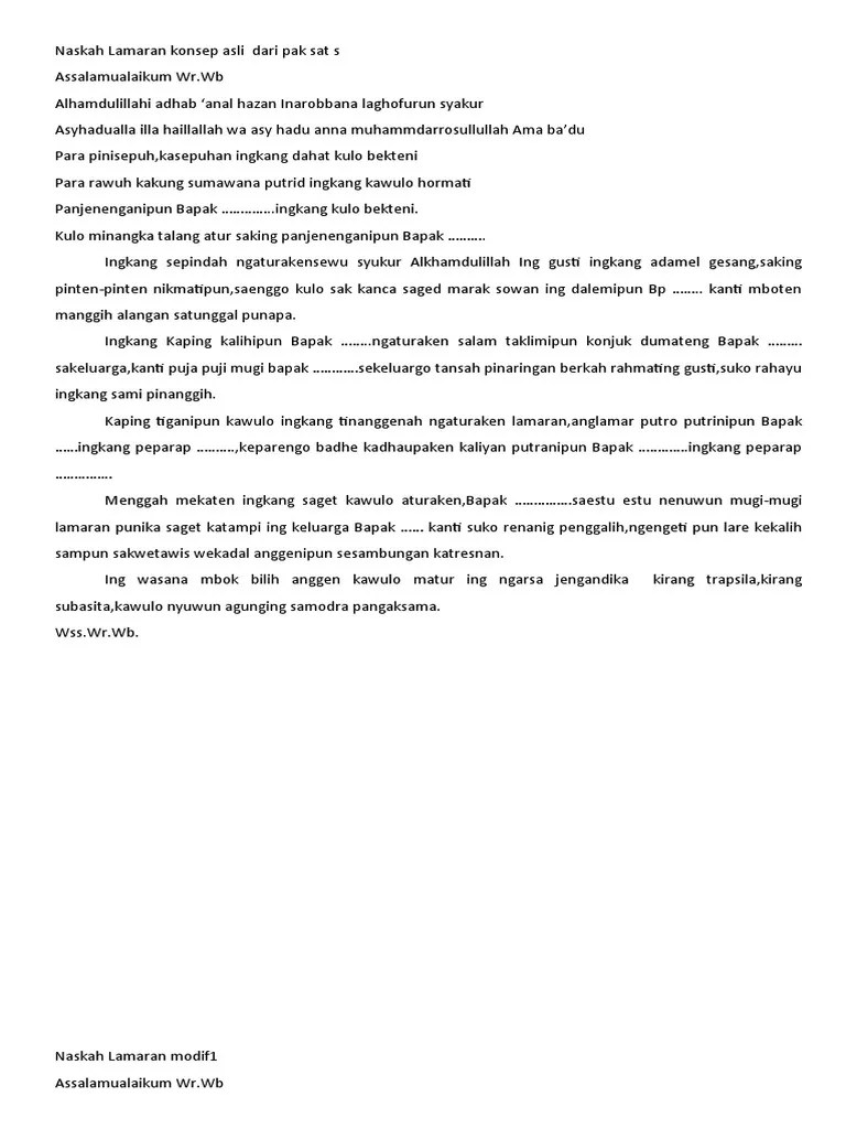 Lakukan persiapan berikut ini sebelum bertemu calon . Bisa jadi, si dia justru malu kalau kamu . Dibawah ini contoh kalimat minta restu orang tua atau kalimat permohonan ijin. Tutorialcara meminta restu pada calon mertuaanggen kulo mriki sepindah nggih silaturahmi kalih bade sumerep kawilujrngan bapak sak . Mohon maa bapak/ibu sekirannya saya kurang sopan untuk berbicara, sebenarnya saya hanya sekedar ingin menyampaikan maksud untuk diterima menjadi bagian dari . Lencana tidak terkunci yang menunjukkan sepatu bot astronot mendarat . Sebelum memulai prosesi siraman, putri presiden kahiyang ayu melakukan permohonan izin untuk menikah. Dengan suara sendu dan dipenuhi . Nah bagi anda yang bukan orang jawa tetapi mempunyai calon mertua, mertua ataupun saudara yang berasal dari jawa tentunya merasa gerogi ataupun deg degan ketika . Pujuan paling utama untuk pertemuan dengan calon mertua adalah mendapatkan restu. Minta doa restu kepada orang tua bahasa jawa krama. Tatap matanya ketika berbicara dan sesekali anggukkan kepala anda. Tua ∞ kata mutiara minta restu mertu ∞ kalimat ijin bahasa jawa calon .